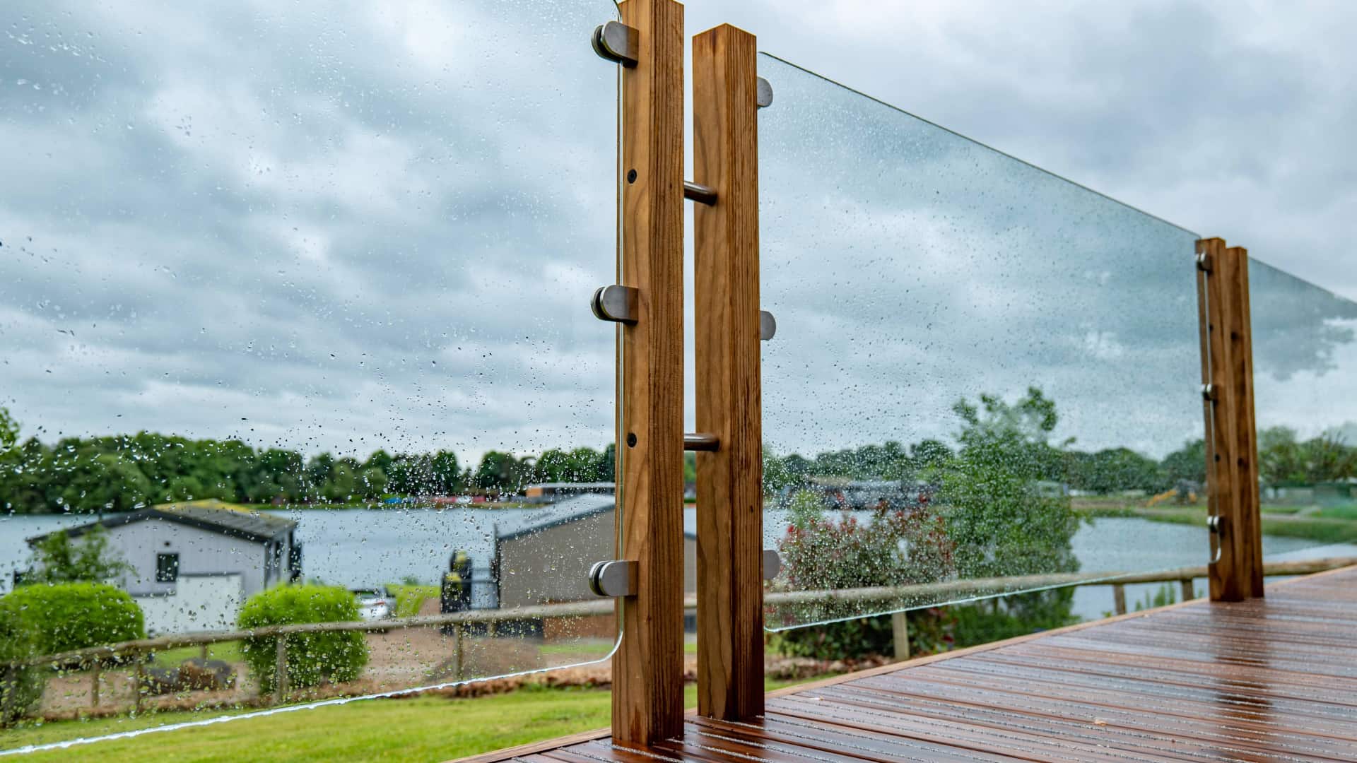 The modular frame bolts together seamlessly allowing for faster installation on site. Once the frame was levelled, WJ Component’s installation team were able to quickly install the Abodo Wood anti-slip decking boards to the frame using hidden screw fastening technology from CAMO. The anti-slip decking boards offer a true non-slip protection for users to have access to their decking area year-round in a range of weather conditions. The timber Abodo wood balustrade was then fitted along with the toughened glass inserts to create stunning, safe decking area. The team finally installed the decking steps, built to specification with a lower step height for easier access to the caravan for the residents. To finish the caravan decking area, a skirt was fitted around the complete perimeter of the park home and a gate was fitted to the access steps.