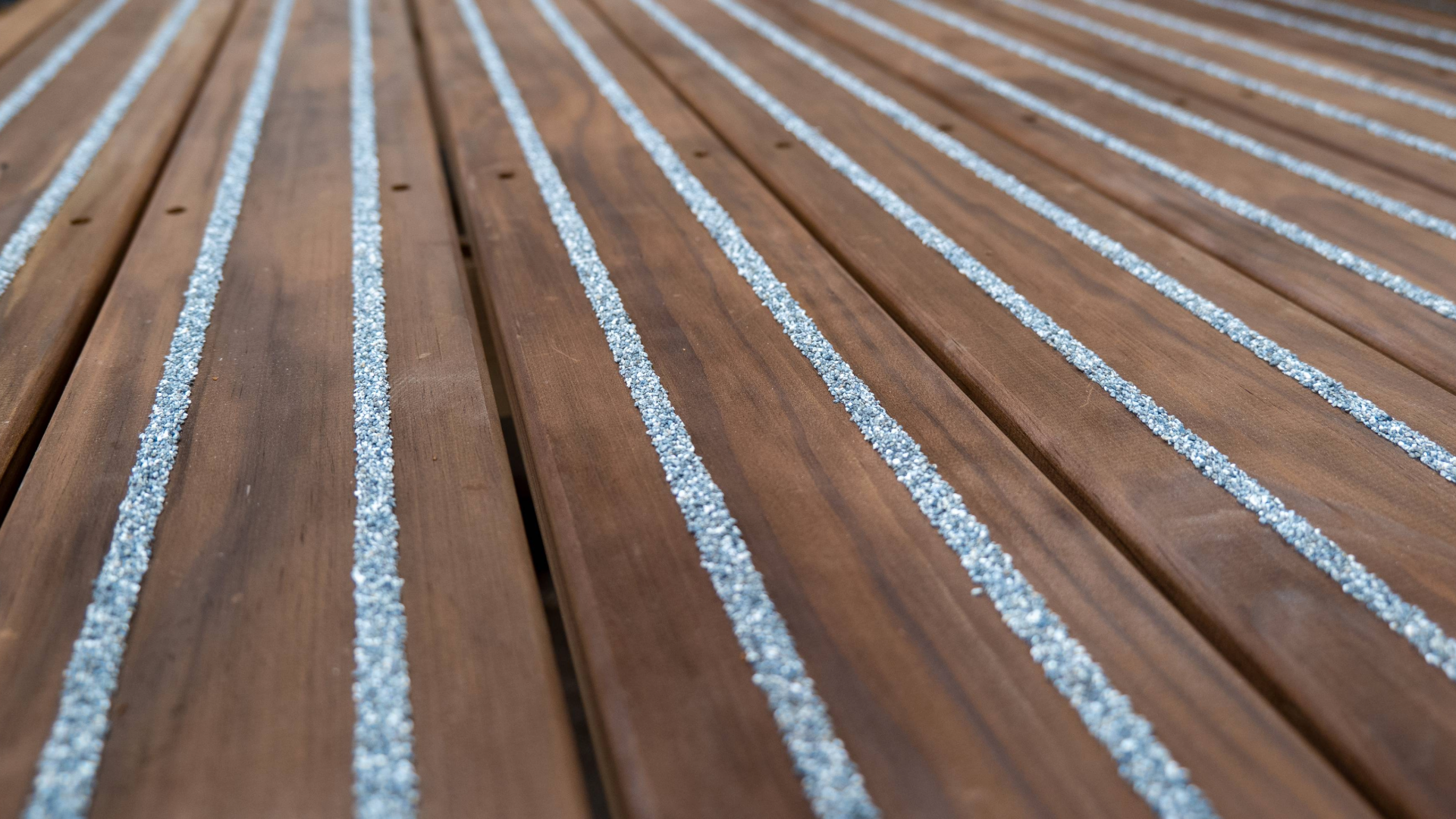 We have introduced a stunning new modified timber decking board to our DeckWright anti-slip product range. Abodo Wood is a thermally modified timber and is designed to age with grace and have exceptional weather-ability whilst maintaining its durability and beauty for a lifetime, making it the perfect decking board. Offering a range of slipped grooves in the timber, DeckWright’s Abodo Wood decking has a darkened appearance that complements our standard colour bauxite aggregate.Abodo timbers are harvested from New Zealand’s FSC® certified rapidly renewable plantation forests. They are ethically crafted with respect from beginning to end. Abodo Wood timbers are precision modified for durability and stability at their sawmill site. Anti-slip timber decking has emerged as a revolutionary solution, offering a blend of functionality, aesthetics, and safety. Safety is non-negotiable in any project and DeckWright anti-slip timber decking provides a sturdy, reliable surface that significantly reduces the risk of slips, trips, and falls. Its textured surface ensures better grip even in wet or adverse weather conditions, mitigating potential accidents and liability concerns. This Abodo wood anti-slip timber decking excels in durability, offering robust resistance against wear, rot, and decay. This longevity translates to reduced maintenance needs and prolonged service life, making it a cost-effective investment for larger projects or garden decking. This Abodo Wood anti-slip decking adds a touch of natural elegance, its warm, organic appearance blends seamlessly with various architectural styles, enhancing the overall visual appeal of the space. Whether used in public parks, commercial complexes, or residential developments, this decking solution lends a timeless charm that complements any environment.